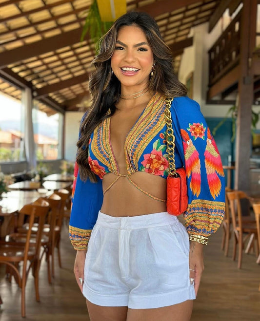 Brazilian Crop Top - POMPOM - blue | Maria Mariá